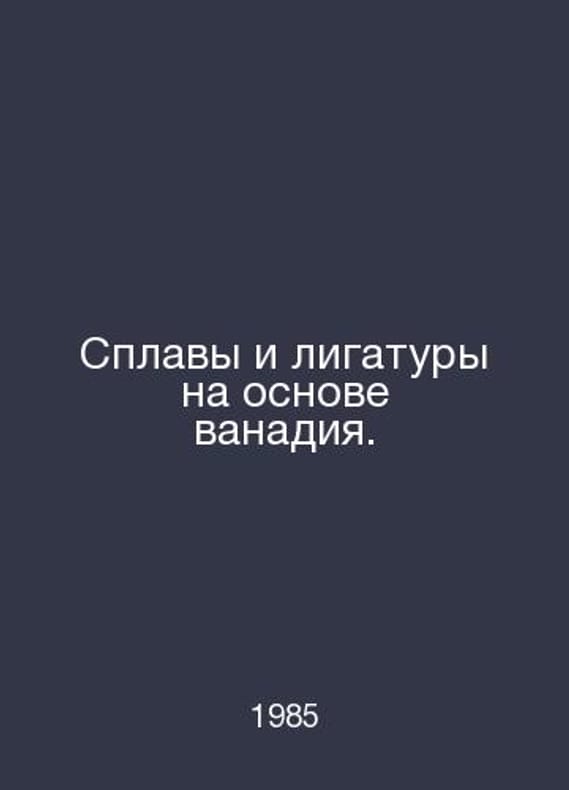 Vanadium alloys and alloys. In Russian /Splavy i ligatury na osnove vanadiya. M Standard Edition 1985. Contact us for details or to request photos of available books. Delivery of this book could take longer than normal due to additional handling time before shipping, and no rush delivery options are available. Please let us know if you have a specific date by which you need to receive your order.SKUalb8dc01eed41ab2c20