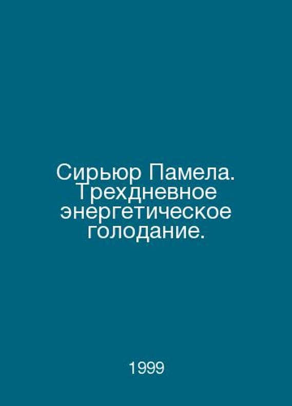 Siryur Pamela. Three days of energy fasting. In Russian /Siryur Pamela. Trekhdnevnoe energeticheskoe golodanie. Series: Health at any age. Minsk: Popurri. 1999. Contact us for details or to request photos of available books. Delivery of this book could take longer than normal due to additional handling time before shipping, and no rush delivery options are available. Please let us know if you have a specific date by which you need to receive your order.SKUalb8e45881e5c51fd04