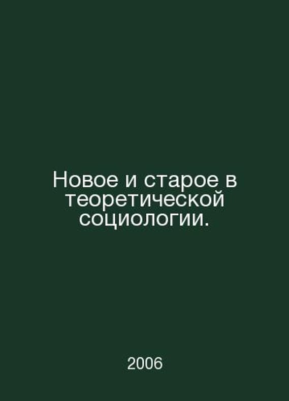 New and old in theoretical sociology. In Russian /Novoe i staroe v teoreticheskoy sotsiologii. Book 4 M. Institute of Sociology RAS 2006. Contact us for details or to request photos of available books. Delivery of this book could take longer than normal due to additional handling time before shipping, and no rush delivery options are available. Please let us know if you have a specific date by which you need to receive your order. SKUalb8eb3dd8626296461