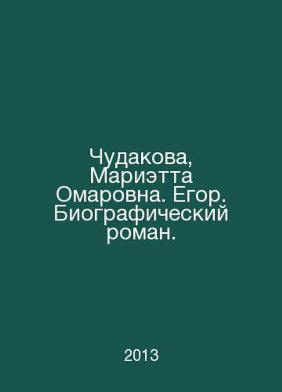 Chudakova, Marietta Omarovna. Egor. Biographical novel. In Russian /Chudakova, Marietta Omarovna. Egor. Biograficheskiy roman. Moscow. Time. 2013. Contact us for details or to request photos of available books. Delivery of this book could take longer than normal due to additional handling time before shipping, and no rush delivery options are available. Please let us know if you have a specific date by which you need to receive your order. SKUalb8ef152fab336ad93