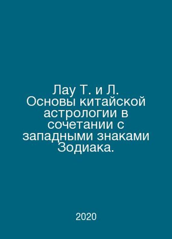Lau T. and L. The fundamentals of Chinese astrology combined with the Western signs of the Zodiac. In Russian /Lau T. i L. Osnovy kitayskoy astrologii v sochetanii s zapadnymi znakami Zodiaka. Complete guide to understanding oneself and others. Series: Oriental Astrology. Moscow: Exmo, 2020. Contact us for details or to request photos of available books. Delivery of this book could take longer than normal due to additional handling time before shipping, and no rush delivery options are available. Please let us know if you have a specific date by which you need to receive your order. SKUalb8ef6219f891f1382