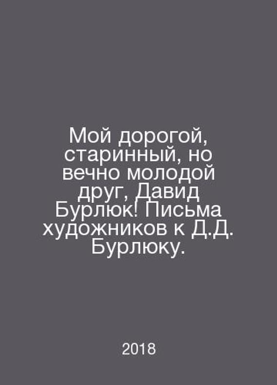 My dear, old, but eternally young friend, David Burlyuk Artists Letters to D.J. Burlyuk. In Russian /Moy dorogoy, starinnyy, no vechno molodoy drug, David Burlyuk Pisma khudozhnikov k D.D. Burlyuku. The introduction of articles and notes and subtexts by N. Gutova and V. Polyakov. M. Grundrisse. 2018.Contact us for details or to request photos of available books. Delivery of this book could take longer than normal due to additional handling time before shipping, and no rush delivery options are available. Please let us know if you have a specific date by which you need to receive your order.SKUalb8ef9b9d43b0ffd7e