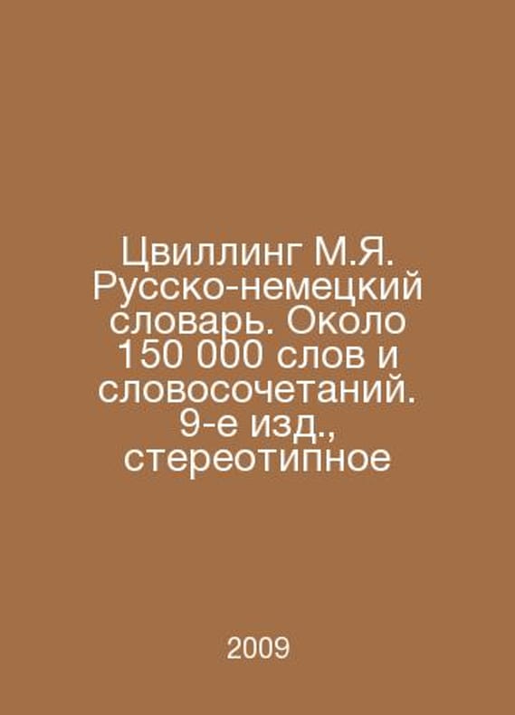 Zwilling M.Ya. Russian-German Dictionary. About 150,000 words and phrases. 9th ed., stereotypical In Russian /Tsvilling M.Ya. Russko-nemetskiy slovar. Okolo 150 000 slov i slovosochetaniy. 9-e izd., stereotipnoe Moscow Rus.Language-Media-Drofa 2009.. Contact us for details or to request photos of available books. SKUalb8f13830643208c03.