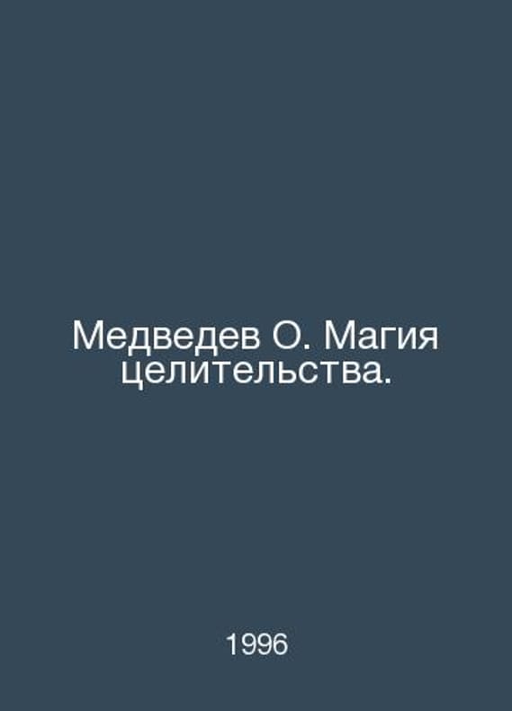 Medvedev O. The magic of healing. In Russian /Medvedev O. Magiya tselitelstva. Healing forces (series) of S.Pb.1996. Contact us for details or to request photos of available books. Delivery of this book could take longer than normal due to additional handling time before shipping, and no rush delivery options are available. Please let us know if you have a specific date by which you need to receive your order.SKUalb8f4b84d4ca863662