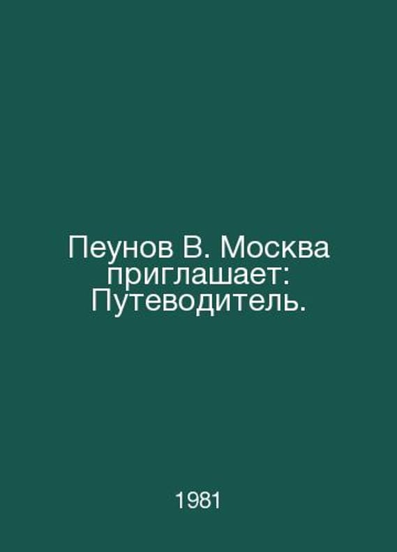 Peunov V. Moscow invites: Guide. In Russian /Peunov V. Moskva priglashaet: Putevoditel. M Profeszdat 1981. Contact us for details or to request photos of available books. Delivery of this book could take longer than normal due to additional handling time before shipping, and no rush delivery options are available. Please let us know if you have a specific date by which you need to receive your order.SKUalb8f6f22b5e262f624
