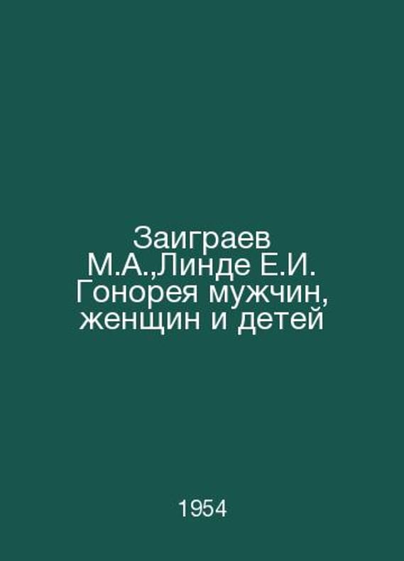 Zagraev M.A., Linda E.I. Gonorrhea of Men, Women and Children In Russian /Zaigraev M.A.,Linde E.I. Gonoreya muzhchin, zhenshchin i detey M Medgiz 1954.. Contact us for details or to request photos of available books. SKUalb900c67c544c41b32.