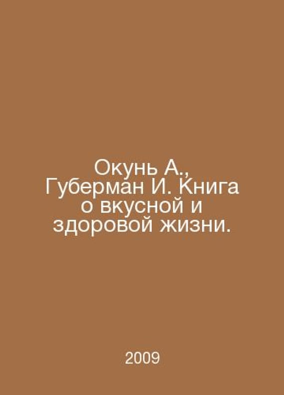 Perch A., Huberman I. A book about a tasty and healthy life. In Russian /Okun A., Guberman I. Kniga o vkusnoy i zdorovoy zhizni. M. Exmo 2009.. Contact us for details or to request photos of available books. SKUalb903328fb8b7cac75.
