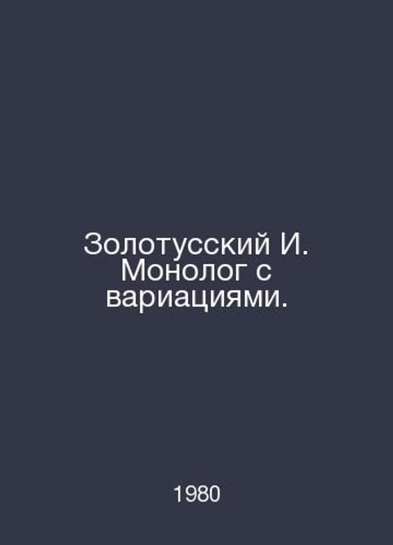 Zolotussky I. Monologue with Variations. In Russian /Zolotusskiy I. Monolog s variatsiyami. Moscow Soviet Russia 1980. Contact us for details or to request photos of available books. Delivery of this book could take longer than normal due to additional handling time before shipping, and no rush delivery options are available. Please let us know if you have a specific date by which you need to receive your order. SKUalb91048eb630fdecfa