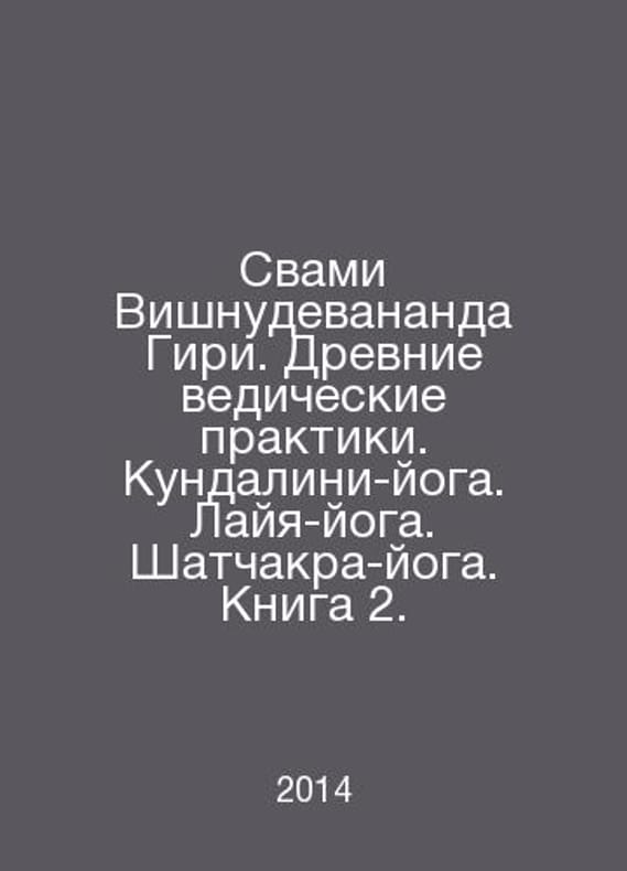 Swami Vishnudevananda Giri. Ancient Vedic Practice. Kundalini Yoga. Laya Yoga. Shatchakra Yoga. Book 2. In Russian /Svami Vishnudevananda Giri. Drevnie vedicheskie praktiki. Kundalini-yoga. Layya-yoga. Shatchakra-yoga. Kniga 2. Moscow. Amrita. 2014 year. Contact us for details or to request photos of available books. Delivery of this book could take longer than normal due to additional handling time before shipping, and no rush delivery options are available. Please let us know if you have a specific date by which you need to receive your order. SKUalb911994725a342516