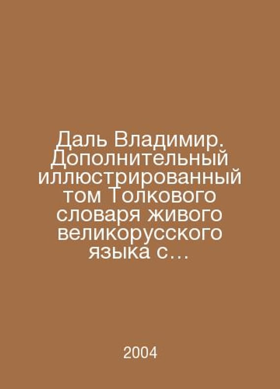 Dal Vladimir. An additional illustrated volume of the Explanatory Dictionary of the Living Great Russian Language with Appendices. In Russian /Dal Vladimir. Dopolnitelnyy illyustrirovannyy tom Tolkovogo slovarya zhivogo velikorusskogo yazyka s prilozheniyami. Series: Dictionaries. M. White City. 2004.. Contact us for details or to request photos of available books. SKUalb921769327936ad6c.