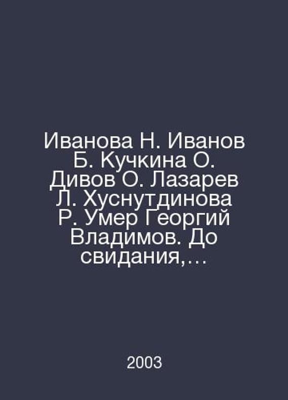 Ivanova N. Ivanov B. Kuchkina O. Divov O. Lazarev L. Khusnutdinova R. Georgy Vladimov died. Goodbye, comrades A collection of essays. Lets remember Tanya is dead In Russian /Ivanova N. Ivanov B. Kuchkina O. Divov O. Lazarev L. Khusnutdinova R. Umer Georgiy Vladimov. Do svidaniya, tovarishchi Sobranie sochineniy. Zapomnim Tanyu mertvoy. Pravda ostanetsya. Vosem uzbekskikh khalatov. Magazine banner # 12 2003 m true 2003.Contact us for details or to request photos of available books. Delivery of this book could take longer than normal due to additional handling time before shipping, and no rush delivery options are available. Please let us know if you have a specific date by which you need to receive your order.SKUalb925b9797f02f9ed4