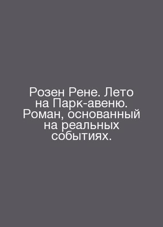 Rosen Rene. Summer on Park Avenue. A novel based on real events. In Russian /Rozen Rene. Leto na Park-avenyu. Roman, osnovannyy na realnykh sobytiyakh. Moscow: Livebook, 2021. 512 Contact us for details or to request photos of available books. Delivery of this book could take longer than normal due to additional handling time before shipping, and no rush delivery options are available. Please let us know if you have a specific date by which you need to receive your order. SKUalb92fb8b13d02b7261