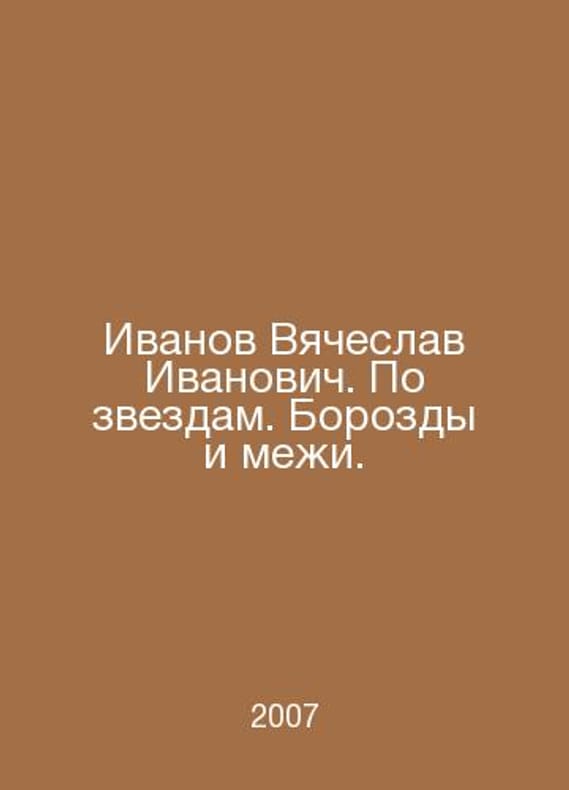 Ivanov Vyacheslav Ivanovich. According to the stars In Russian /Ivanov Vyacheslav Ivanovich. Po zvezdam. Borozdy i mezhi. Series: Russias Social Thought. Moscow: Astrel. 2007. Contact us for details or to request photos of available books. Delivery of this book could take longer than normal due to additional handling time before shipping, and no rush delivery options are available. Please let us know if you have a specific date by which you need to receive your order. SKUalb93b42fb78b119925