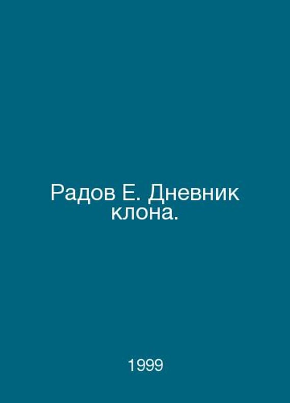 The Diary of a Clone. In Russian /Radov E. Dnevnik klona. The Diary of a Clone. 1999. We have thousands of titles and often several copies of each title may be available. Please feel free to contact us for a detailed description of the copies available. SKUalbd28af21b7072f0f5.