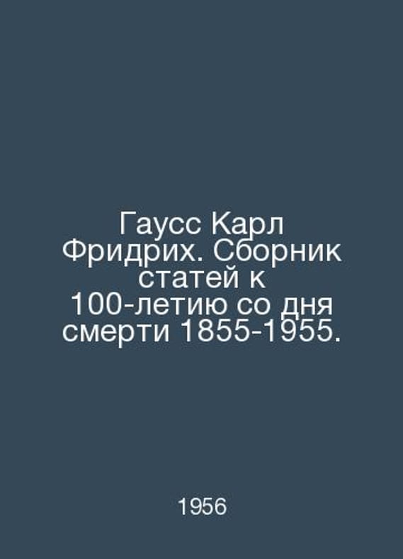 Gauss Karl Friedrich. A collection of articles to mark the 100th anniversary of his death 1855-1955. In Russian /Gauss Karl Fridrikh. Sbornik statey k 100-letiyu so dnya smerti 1855-1955. Moscow Academy of Sciences of the USSR 1956.Contact us for details or to request photos of available books. Delivery of this book could take longer than normal due to additional handling time before shipping, and no rush delivery options are available. Please let us know if you have a specific date by which you need to receive your order.SKUalb93e27caa6f75552c