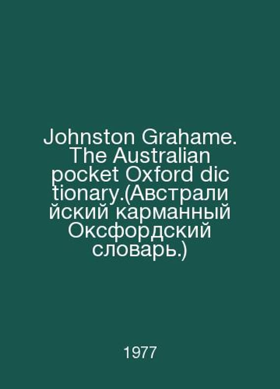 Johnston Grahame. The Australian pocket Oxford Dictionary. In Russian /Johnston Grahame. The Australian pocket Oxford dictionary.(Avstraliyskiy karmannyy Oksfordskiy slovar.) In English. Melbourne. Oxford university press. 1977.. Contact us for details or to request photos of available books. SKUalb94179dd65489e7f6.