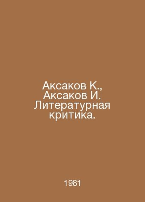 Aksakov K., Aksakov I. Literary Criticism. In Russian /Aksakov K., Aksakov I. Literaturnaya kritika. M Sovremennik 1981. Contact us for details or to request photos of available books. Delivery of this book could take longer than normal due to additional handling time before shipping, and no rush delivery options are available. Please let us know if you have a specific date by which you need to receive your order. SKUalb947ca643241b3721