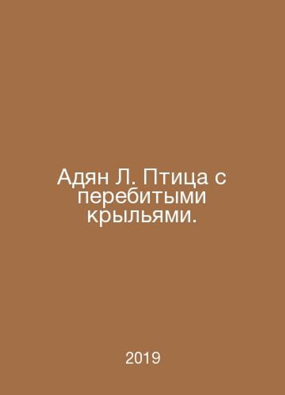 Adyan L. The bird with broken wings. In Russian /Adyan L. Ptitsa s perebitymi krylyami. Renaissance 2019.Contact us for details or to request photos of available books. Delivery of this book could take longer than normal due to additional handling time before shipping, and no rush delivery options are available. Please let us know if you have a specific date by which you need to receive your order.SKUalb95be146d9533b4e1
