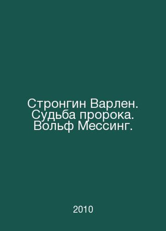 Strongin Warlen. The fate of the prophet. Wolf Messing. In Russian /Strongin Varlen. Sudba proroka. Volf Messing. M. Ast, Zebra E. 2010.Contact us for details or to request photos of available books. Delivery of this book could take longer than normal due to additional handling time before shipping, and no rush delivery options are available. Please let us know if you have a specific date by which you need to receive your order.SKUalb96b2b5fcc09d4be1