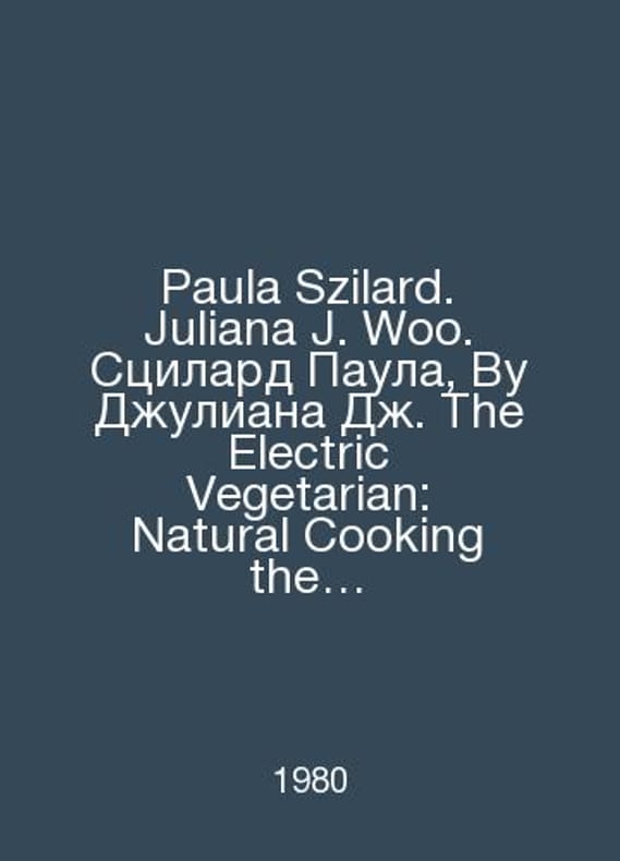 Paula Szilard. Juliana J. Woo. Scylard Paula, Wu Juliana J. The Electric Vegetarian: Natural Cooking the Food Processor Way. Electric Vegetarian: A Way for Natural Food Cooking. In Russian /Paula Szilard. Juliana J. Woo. Stsilard Paula, Vu Dzhuliana Dzh. The Electric Vegetarian: Natural Cooking the Food Processor Way. Elektricheskiy Vegetarianets: sposob Estestvennogo Prigotovleniya Pishchevykh Produktov. The Johnson Publishing Companys 1980 book in Colorado.. Contact us for details or to request photos of available books. SKUalb96c0767355fa7be3.