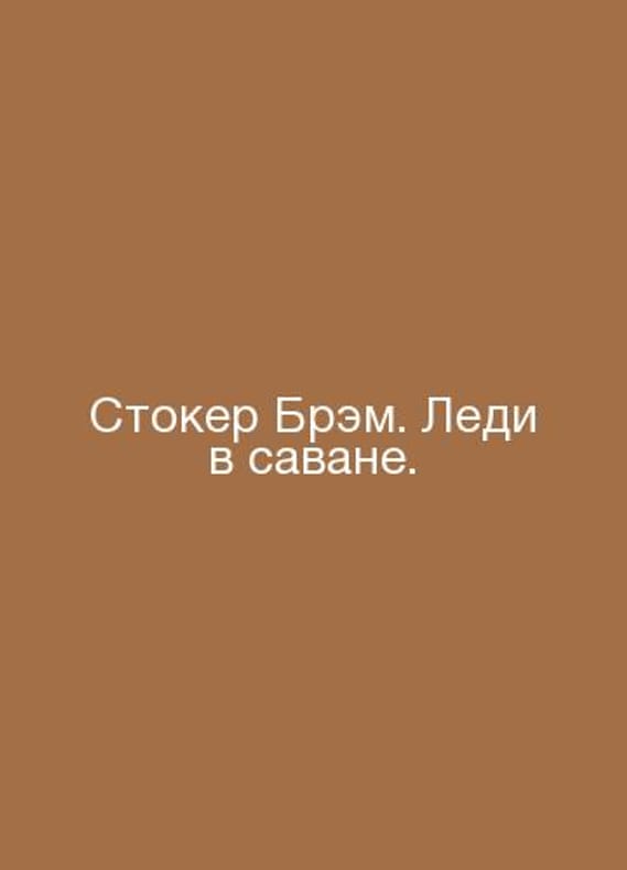 Bram Stoker. Lady in the Savannah. In Russian /Brem Stoker. Ledi v savane. Series: Grimoire M Enigma Collection 2012. Contact us for details or to request photos of available books. Delivery of this book could take longer than normal due to additional handling time before shipping, and no rush delivery options are available. Please let us know if you have a specific date by which you need to receive your order. SKUalbd1071fcd2ddd8c5a