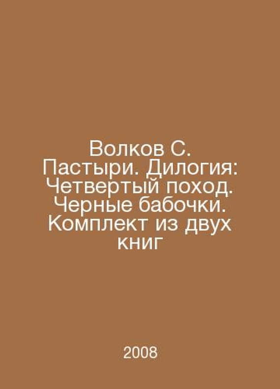 Volkov S. Shepherds. Diology: The Fourth March. Black Butterflies. A set of two books In Russian /Volkov S. Pastyri. Dilogiya: Chetvertyy pokhod. Chernye babochki. Komplekt iz dvukh knig M. OLMA Media Groups 2008 Super Fantasy Series. Contact us for details or to request photos of available books. Delivery of this book could take longer than normal due to additional handling time before shipping, and no rush delivery options are available. Please let us know if you have a specific date by which you need to receive your order.SKUalb97482ba1d64e6a3d