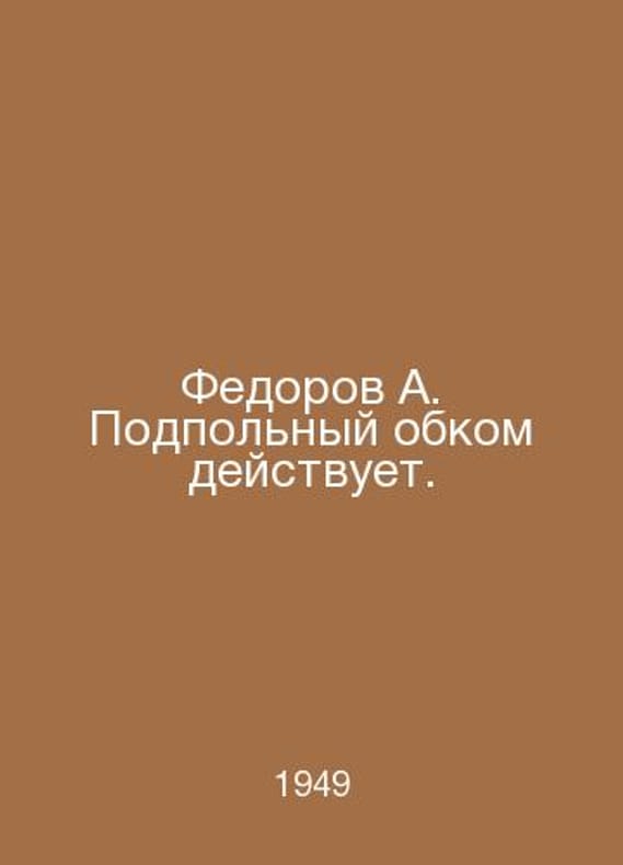 Fedorov A. The underground regional committee is active. In Russian /Fedorov A. Podpolnyy obkom deystvuet. M 1949.Contact us for details or to request photos of available books. Delivery of this book could take longer than normal due to additional handling time before shipping, and no rush delivery options are available. Please let us know if you have a specific date by which you need to receive your order.SKUalb974edbb6caf2fc9c