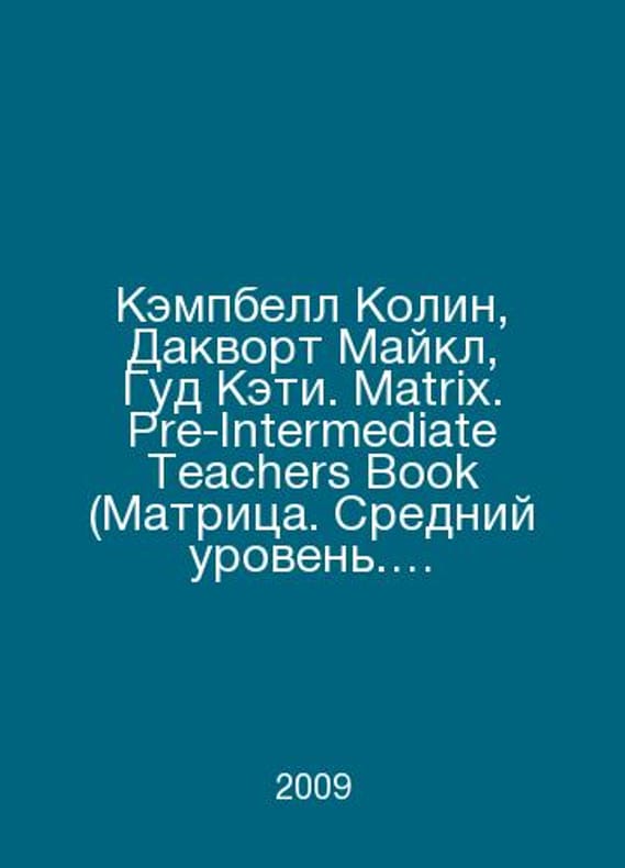 Campbell Colin, Duckworth Michael, Good Katie. Matrix. Pre-Intermediate Teachers Book. In English /Kempbell Kolin, Dakvort Maykl, Gud Keti. Matrix. Pre-Intermediate Teachers Book (Matritsa. Sredniy uroven. Kniga dlya uchitelya). Book in English. Oxford. Oxford University Press. 2009.. Contact us for details or to request photos of available books. SKUalb974f24dfc0001760.
