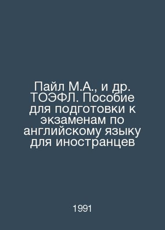 Pyle M.A., et al. TOEFL. An English Language Preparation Guide for Foreigners In Russian /Payl M.A., i dr. TOEFL. Posobie dlya podgotovki k ekzamenam po angliyskomu yazyku dlya inostrantsev M 1991.. Contact us for details or to request photos of available books. SKUalb975d93d86bd01d2c.