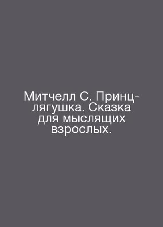 Mitchell S. The Frog Prince. A tale for thinking adults. In Russian /Mitchell S. Prints-lyagushka. Skazka dlya myslyashchikh vzroslykh. M.Sofia2004g240 s. Contact us for details or to request photos of available books. Delivery of this book could take longer than normal due to additional handling time before shipping, and no rush delivery options are available. Please let us know if you have a specific date by which you need to receive your order. SKUalb978c28952d2c660d