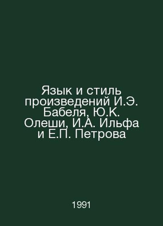 Language and style of works by I.E. Babel, Y.K. Olesha, I.A. Ilf and E. Petrov In Russian /Yazyk i stil proizvedeniy I.E. Babelya, Yu.K. Oleshi, I.A. Ilfa i E. Petrova Collection of Scientific Proceedings. Revised by Yu.A. Karpenko Kyiv UMK in 1991.. Contact us for details or to request photos of available books. SKUalb97bcc273aa6442e7.
