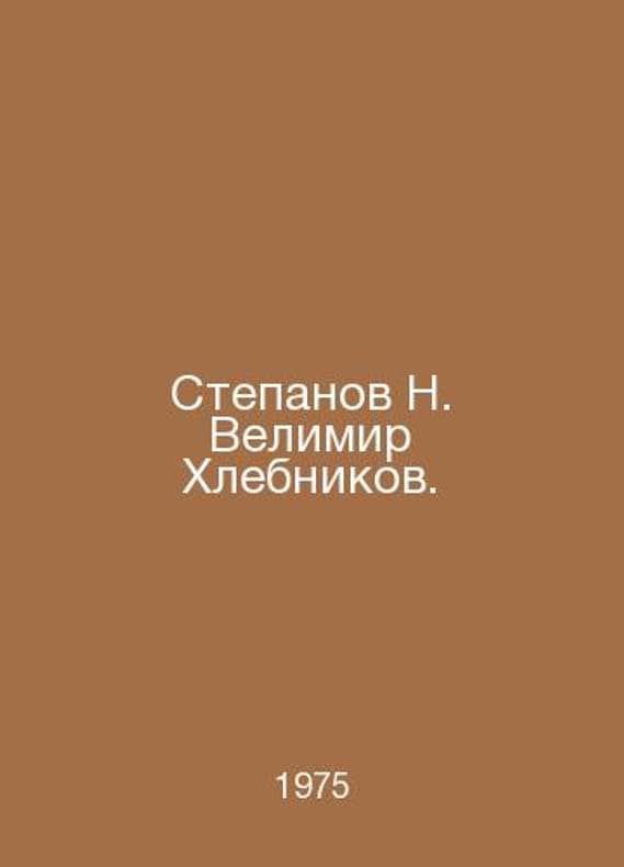 Stepanov N. Vimir Khlebnikov. In Russian /Stepanov N. Velimir Khlebnikov. Life and Creativity. M. Soviet writer 1975. Contact us for details or to request photos of available books. Delivery of this book could take longer than normal due to additional handling time before shipping, and no rush delivery options are available. Please let us know if you have a specific date by which you need to receive your order. SKUalb97db7aa7c59cebef