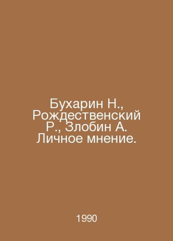 N. Bukharin, Rozhdestvensky R., Zlobin A. Personal opinion. In Russian /Bukharin N., Rozhdestvenskiy R., Zlobin A. Lichnoe mnenie. M Soviet writer 1990.Contact us for details or to request photos of available books. Delivery of this book could take longer than normal due to additional handling time before shipping, and no rush delivery options are available. Please let us know if you have a specific date by which you need to receive your order.SKUalb9818c5db15d90012