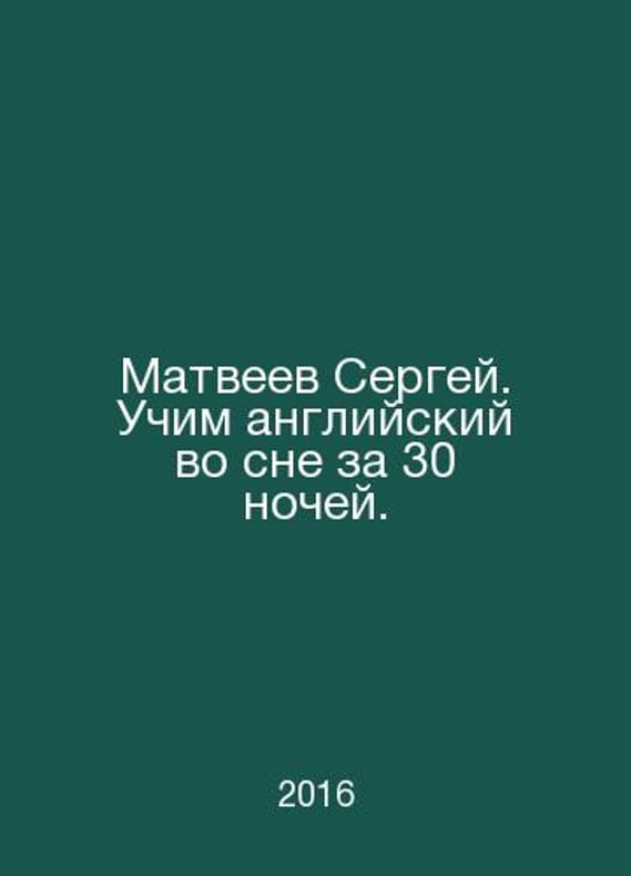 "Sergei Matveyev. Learning English in a dream in 30 nights. In Russian /Matveev Sergey. Uchim angliyskiy vo sne za 30 nochey. ( ""Learning in a Dream). Moscow: ACT, 2016."".Contact us for details or to request photos of available books. Delivery of this book could take longer than normal due to additional handling time before shipping, and no rush delivery options are available. Please let us know if you have a specific date by which you need to receive your order. SKUalb9964ceed87cc730a"