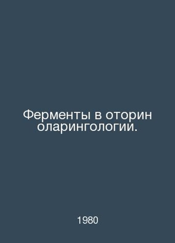 Enzymes in otolaryngology. In Russian /Fermenty v otorinolaringologii. Kyiv 1980.Contact us for details or to request photos of available books. Delivery of this book could take longer than normal due to additional handling time before shipping, and no rush delivery options are available. Please let us know if you have a specific date by which you need to receive your order.SKUalb999fed737bdb6bfa