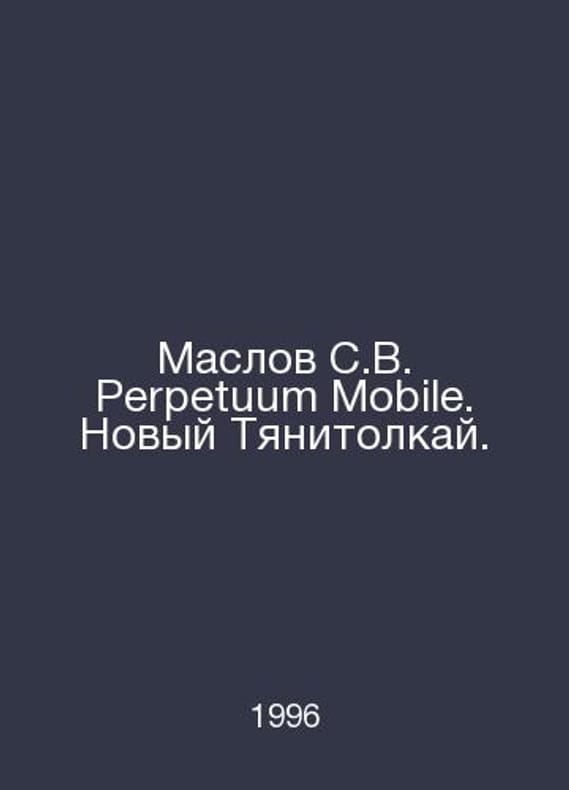 Maslov S.V. Perpetuum Mobile. New Tyanitolkai. In Russian /Maslov S.V. Perpetuum Mobile. Novyy Tyanitolkay. Series: Academy of Astrology. Moscow: ICA, 1996. Contact us for details or to request photos of available books. Delivery of this book could take longer than normal due to additional handling time before shipping, and no rush delivery options are available. Please let us know if you have a specific date by which you need to receive your order. SKUalb9a7189bbe5631f3a