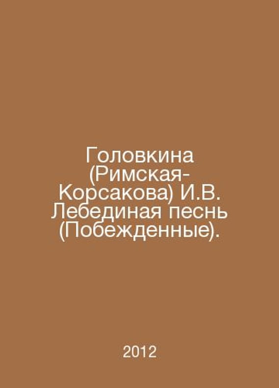 Golovkina (Rimskaya-Korsakova) I.V. Swan Song (Defeated). In Russian /Golovkina (Rimskaya-Korsakova) I.V. Lebedinaya pesn (Pobezhdennye). Third edition. Ryazan. Zerna. 2012.Contact us for details or to request photos of available books. Delivery of this book could take longer than normal due to additional handling time before shipping, and no rush delivery options are available. Please let us know if you have a specific date by which you need to receive your order.SKUalb9adc8bdd9418b4e3
