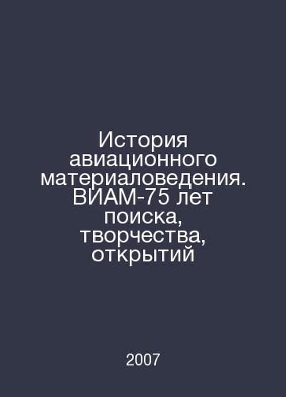The History of Aviation Materials Science. VIAM-75 Years of Search, Creativity, and Discovery In Russian /Istoriya aviatsionnogo materialovedeniya. VIAM-75 let poiska, tvorchestva, otkrytiy Under the general editorial of Academician E.N. Kablov M. Nauka. 2007. Contact us for details or to request photos of available books. Delivery of this book could take longer than normal due to additional handling time before shipping, and no rush delivery options are available. Please let us know if you have a specific date by which you need to receive your order.SKUalb9ae22ab3517e99b8