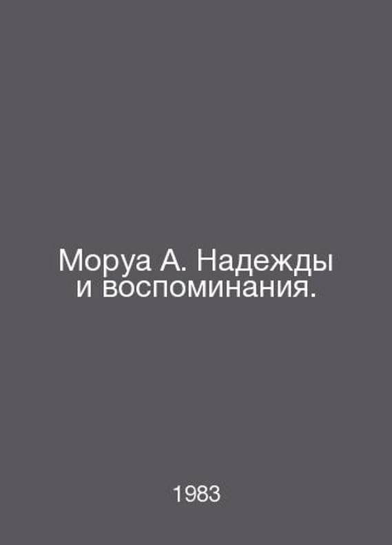 Morua A. Hopes and Memories. In Russian /Morua A. Nadezhdy i vospominaniya. Artist. publicist, pen from French M Progress 1983.Contact us for details or to request photos of available books. Delivery of this book could take longer than normal due to additional handling time before shipping, and no rush delivery options are available. Please let us know if you have a specific date by which you need to receive your order.SKUalb9bb8b55d04f3c037