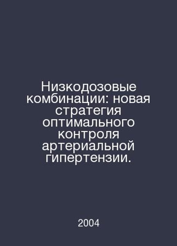 Low-dose combinations: a new strategy for optimal control of hypertension. In Russian /Nizkodozovye kombinatsii: novaya strategiya optimalnogo kontrolya arterialnoy gipertenzii. Low-dose combinations: a new strategy for optimal control of arterial hypertension. 2004. Contact us for details or to request photos of available books. SKUalb9c6e384698dfa6a6.