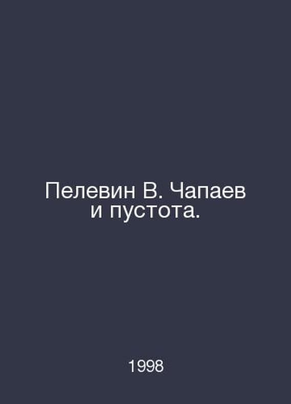 Pelevin V. Chapaev and the Void. In Russian /Pelevin V. Chapaev i pustota. M. Wagrius 1998.Contact us for details or to request photos of available books. Delivery of this book could take longer than normal due to additional handling time before shipping, and no rush delivery options are available. Please let us know if you have a specific date by which you need to receive your order.SKUalb9cb29f40e63af527