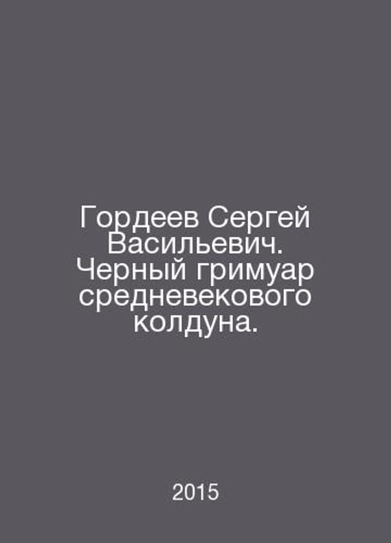 Sergey Gordeev. Black grimace of a medieval sorcerer. In Russian /Gordeev Sergey Vasilevich. Chernyy grimuar srednevekovogo kolduna. N.N. Magic-Kniga 2015. Contact us for details or to request photos of available books. Delivery of this book could take longer than normal due to additional handling time before shipping, and no rush delivery options are available. Please let us know if you have a specific date by which you need to receive your order. SKUalb9f12f630d4c7b55a