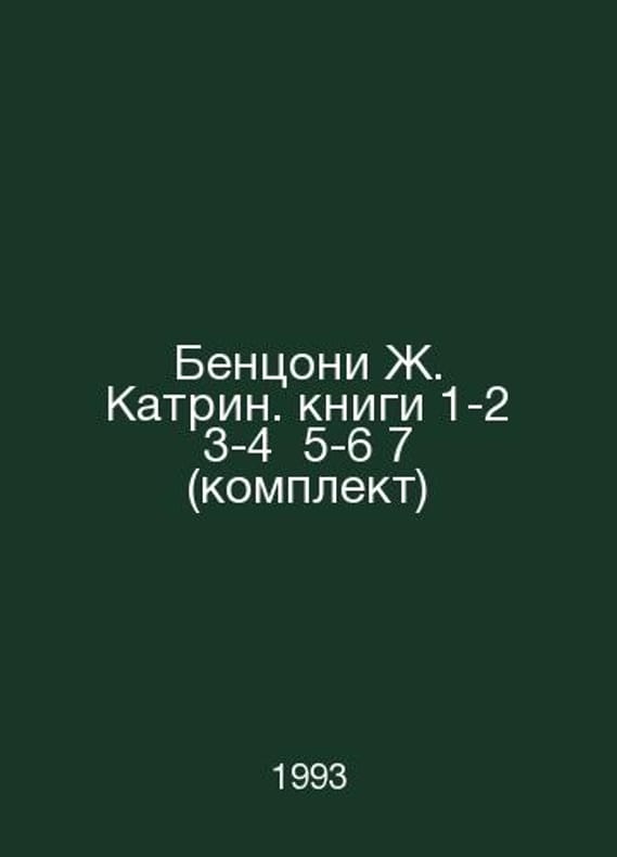 Benzoni J. Katrina Books 1-2 3-4 5-6 7 (set In Russian /Bentsoni Zh. Katrin. knigi 1-2 3-4 5-6 7 (komplekt) M. Kron-Presss Historical Adventure Novel of 1993. Contact us for details or to request photos of available books. Delivery of this book could take longer than normal due to additional handling time before shipping, and no rush delivery options are available. Please let us know if you have a specific date by which you need to receive your order. SKUalb9f2de15535ebc5e5