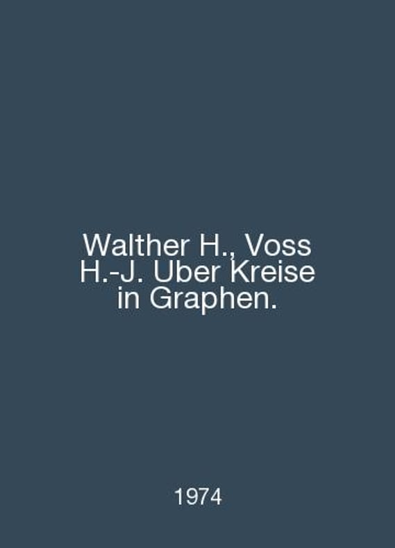 Walter H., Voss H.-J. Uber Kreise in Graphen. In German /Walther H., Voss H.-J. Uber Kreise in Graphen. In German, Berlin VEB DB 1974.Contact us for details or to request photos of available books. Delivery of this book could take longer than normal due to additional handling time before shipping, and no rush delivery options are available. Please let us know if you have a specific date by which you need to receive your order.SKUalb9f7b0140fbcf928f