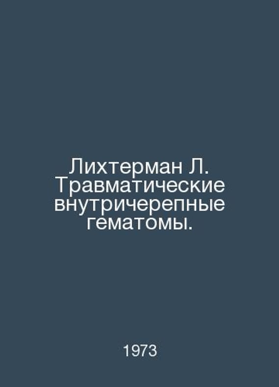 Lichterman L. Traumatic intracranial hematomas. In Russian /Likhterman L. Travmaticheskie vnutricherepnye gematomy. BPR M Medicine 1973.Contact us for details or to request photos of available books. Delivery of this book could take longer than normal due to additional handling time before shipping, and no rush delivery options are available. Please let us know if you have a specific date by which you need to receive your order.SKUalb9fdd30bef22a3bcf