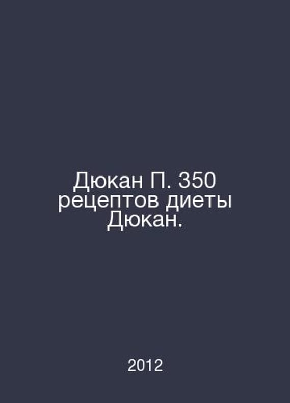 Ducan 350 recipes for the Ducan diet. In Russian /Dyukan 350 retseptov diety Dyukan. Per francs M Exmo 2012.. Contact us for details or to request photos of available books. SKUalba0044f8c482a97f7.