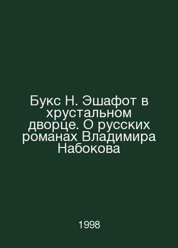 Bux N. Eshafot in the Crystal Palace. On Vladimir Nabokovs Russian Novels In Russian /Buks N. Eshafot v khrustalnom dvortse. O russkikh romanakh Vladimira Nabokova Series: Science Library M. The New Literary Review 1998. Contact us for details or to request photos of available books. Delivery of this book could take longer than normal due to additional handling time before shipping, and no rush delivery options are available. Please let us know if you have a specific date by which you need to receive your order. SKUalba01103088aef8f0e