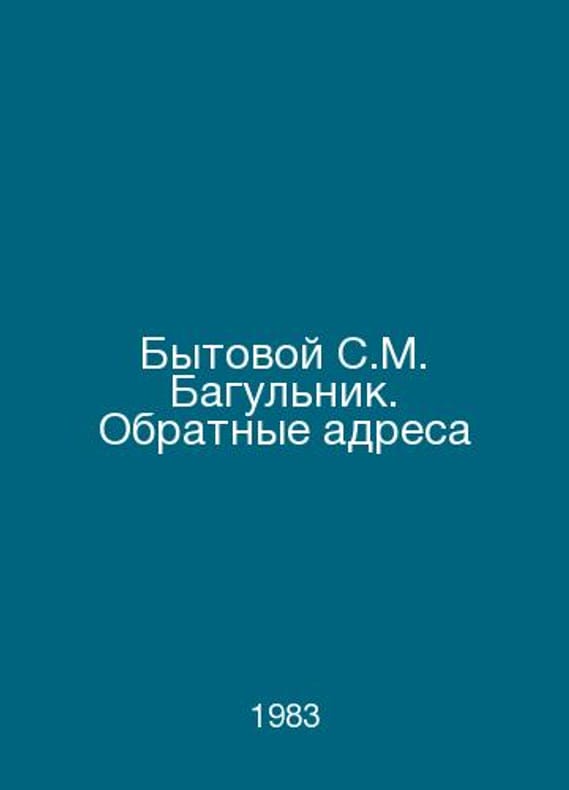 Domestic S.M. Bagulnik. Return addresses In Russian /Bytovoy S.M. Bagulnik. Obratnye adresa L Soviet writer 1983.Contact us for details or to request photos of available books. Delivery of this book could take longer than normal due to additional handling time before shipping, and no rush delivery options are available. Please let us know if you have a specific date by which you need to receive your order.SKUalba057881eef73328b