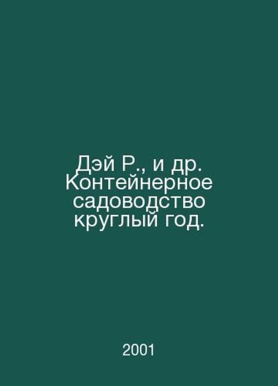 Day R. et al. Container gardening all year round. In Russian /Dey R., i dr. Konteynernoe sadovodstvo kruglyy god. M. Readers Digest 2001.Contact us for details or to request photos of available books. Delivery of this book could take longer than normal due to additional handling time before shipping, and no rush delivery options are available. Please let us know if you have a specific date by which you need to receive your order.SKUalba117f6254acd90f6