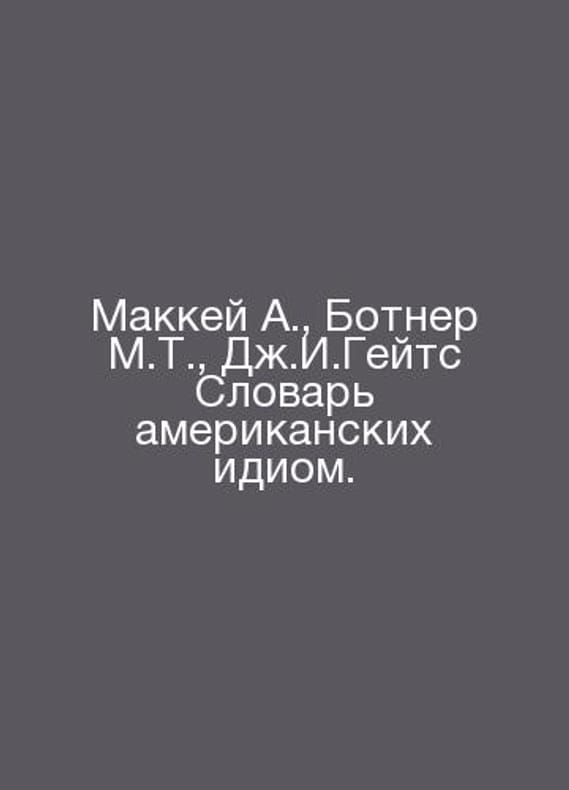 McKay A., Botner M.T., J.I. Gates Dictionary of American Idioms. In Russian /Makkey A., Botner M.T., Dzh.I.Geyts Slovar amerikanskikh idiom. More than 8,000 words and expressions 455 s.Contact us for details or to request photos of available books. Delivery of this book could take longer than normal due to additional handling time before shipping, and no rush delivery options are available. Please let us know if you have a specific date by which you need to receive your order. SKUalba1f3ba48615d0405
